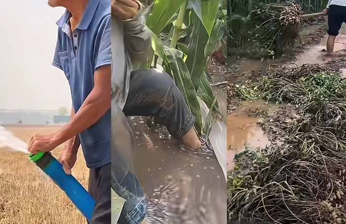 在潮湿田地里,使用长柄的农具(如长柄锄、长柄剪),可以减少弯腰的幅度。
