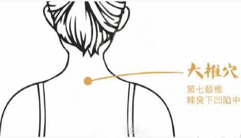 用手掌贴着大椎穴上下左右搓即可,也可用中指端轻转按揉,或者是用拇指和食指、中指、无名指等对称用力,对大椎穴位做捏挤运动。每一次搓按的时间在15分钟左右即可,一天重复做2次。