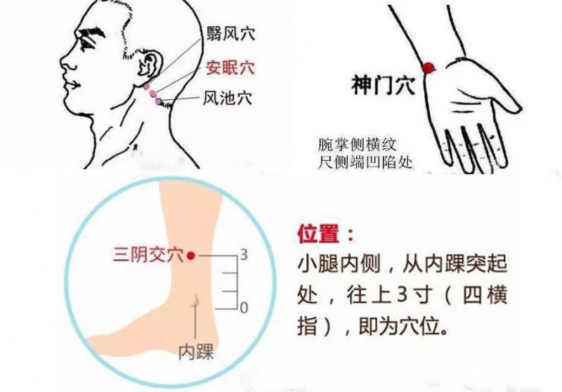 三阴交穴是足太阴脾经的穴位,位于足内踝高点上3寸(自己的手横放,约4根手指横放的宽度),当胫骨内侧后缘处。此穴乃足三阴经(肝、脾、肾)的交会穴,故能通调肝脾肾之经气,达到健脾、益肾、养肝的作用,精血得以统摄于脾,受藏于肝,内养于肾,心气下交,则神志安宁。
